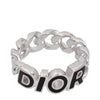 A refined and bold statement piece from Dior, crafted entirely from high-quality sterling silver. This men's chain ring stands out with its Cuban link-style band and raised "DIOR" logo lettering filled in black enamel, delivering a distinctive contrast. Ideal for those who appreciate luxury with attitude.