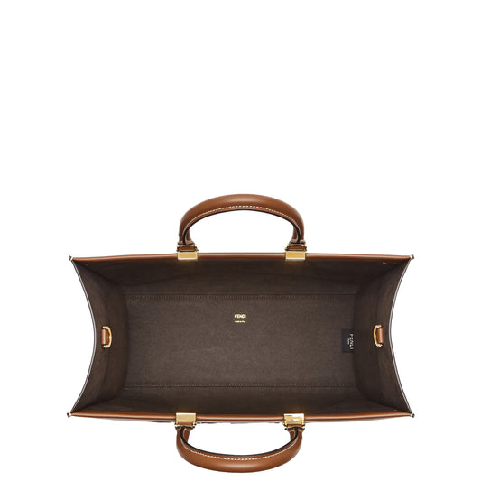 Fendi Sunshine Medium Viscose fibre Pequin and brown leather Tote bag
