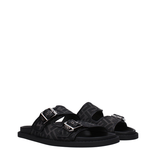 Fendi Men’s FF Mono Canvas & Leather Flip-Flops Nero