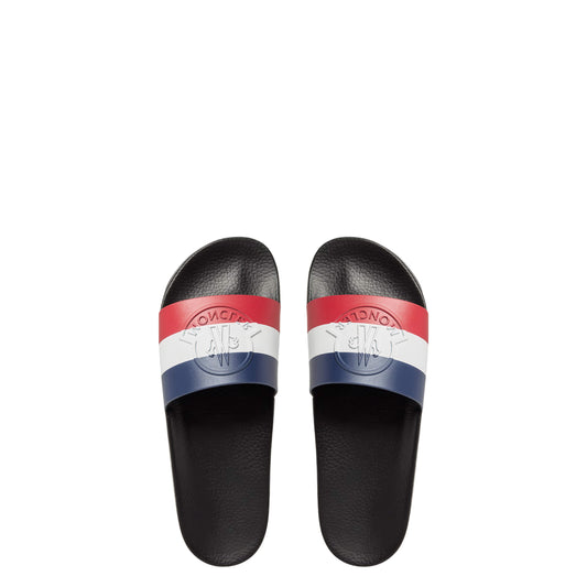 Moncler Men’s Logo Slide Slippers – Tricolor Rubber Pool Slides